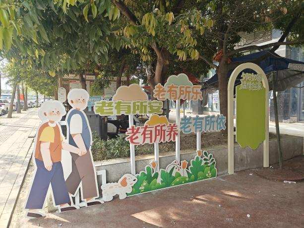 如今,空间主体改造已基本完成,原本破损的花台完成修缮美化,地面完成硬化防滑处理和排水处理,户外休闲桌椅、场景照明系统等便民设施全部落地,老年友好宣传、便民服务指南等内容也同步布设,彻底解决了老年居民休憩不便、安全无保障的痛点。