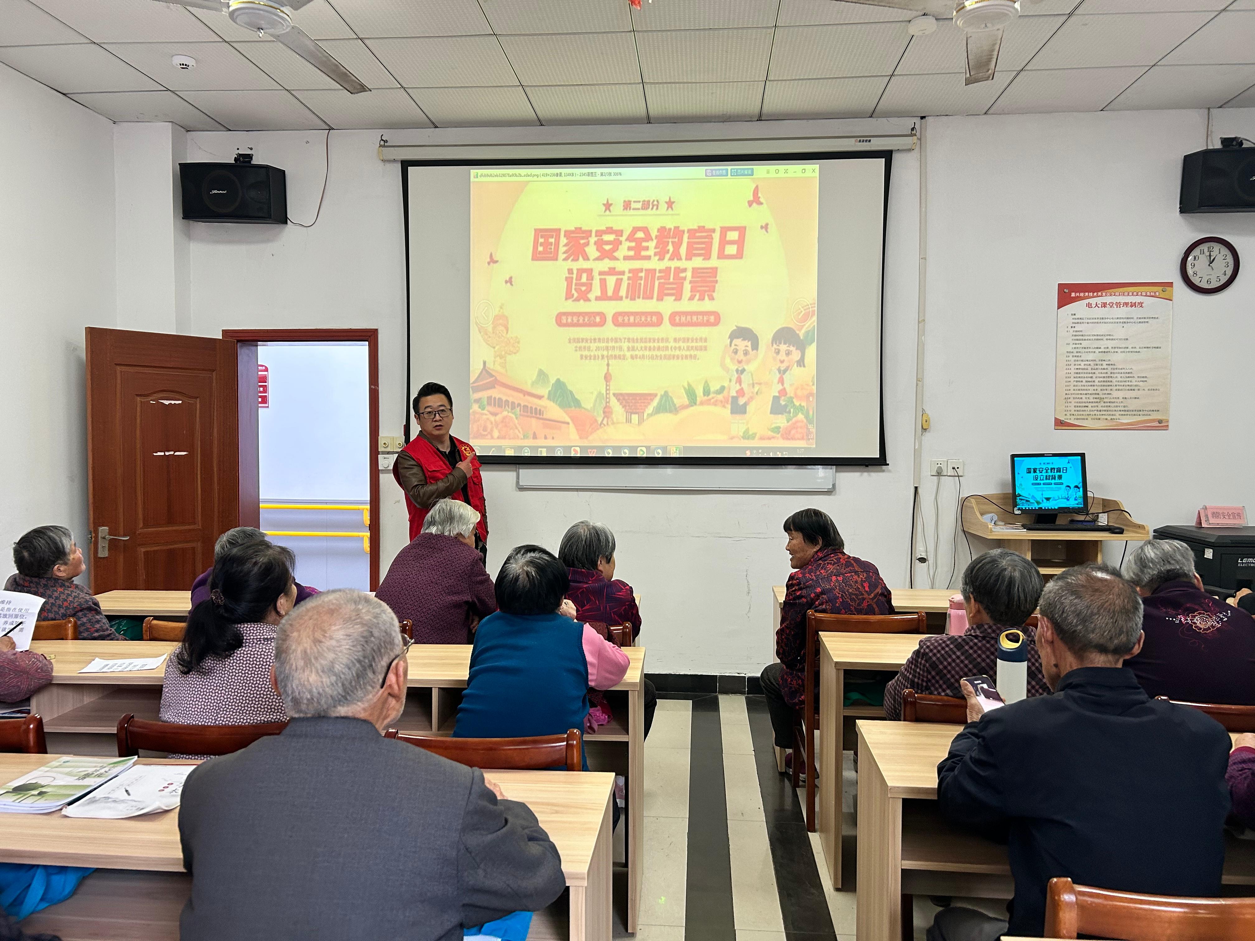 近日,嘉兴市经开区长水街道石堰社区新时代文明实践站在居家养老服务中心开展“敬有礼·国家安全教育日”主题宣传活动,邀请辖区老年居民参与。