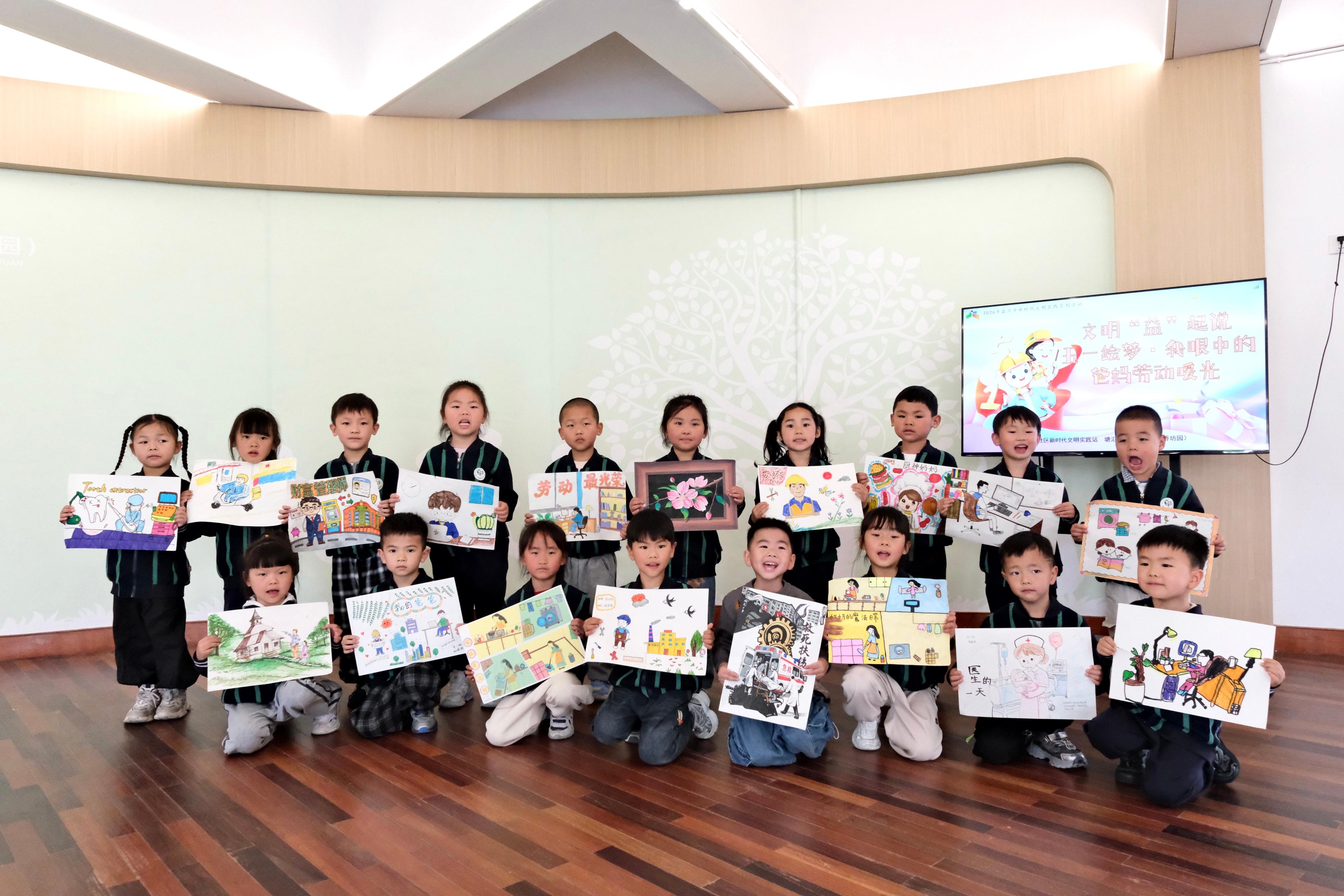 近日,嘉兴经开区塘汇街道茶香坊社区新时代文明实践站联合塘汇实验幼儿园(茶香坊园)推出的“文明‘益’起说”系列活动之“我眼中的爸妈劳动暖光”主题绘画活动,以“家庭观察+校园创作”的创新形式,组织30余名幼儿通过画笔感知父母职业的辛劳与荣光,寻找劳动者的闪光点。