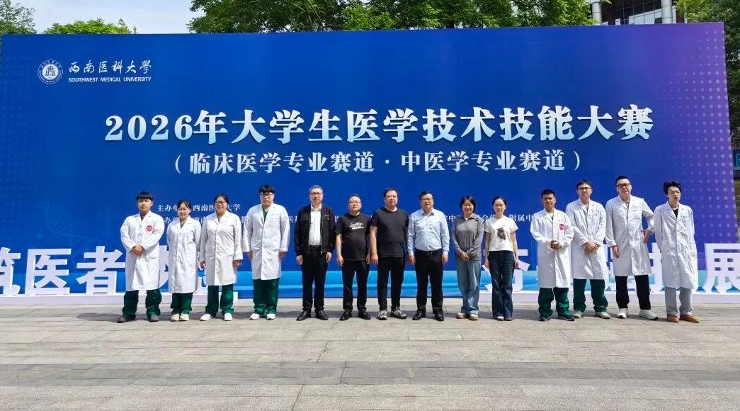社区文化网(苏勤 谢涵)4月21日-23日,西南医科大学2026年大学生医学技术技能大赛中医学专业赛道在城北校区顺利举办。由射洪市中医院副院长范运强带队,医务部主任侯德健等一行人参加,苏刚刚、鲁毅作为裁判受邀参加。