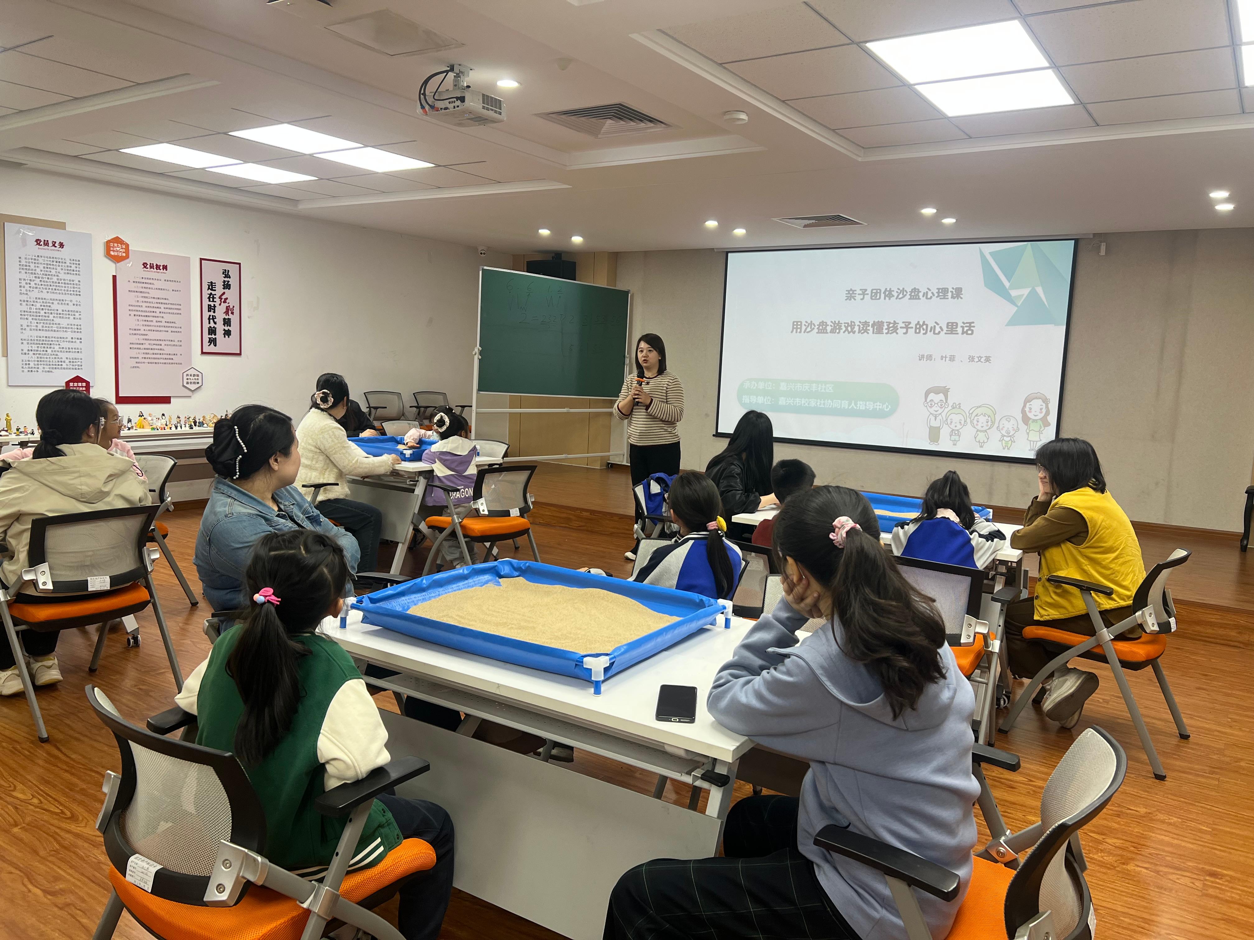 4月24日,嘉兴经开区长水街道庆丰社区联合嘉兴市校家社协同育人指导中心开展“用沙盘游戏读懂孩子心里话”亲子沙盘主题公益体验活动,邀请辖区十五组家庭,共赴一场温馨治愈、双向成长的亲子心灵之约。