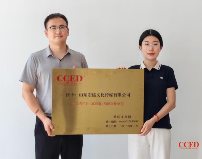 《社区文化》杂志正式授予山东宏儒文化传媒有限公司为其“小记者”栏目(威海市)战略合作单位。
