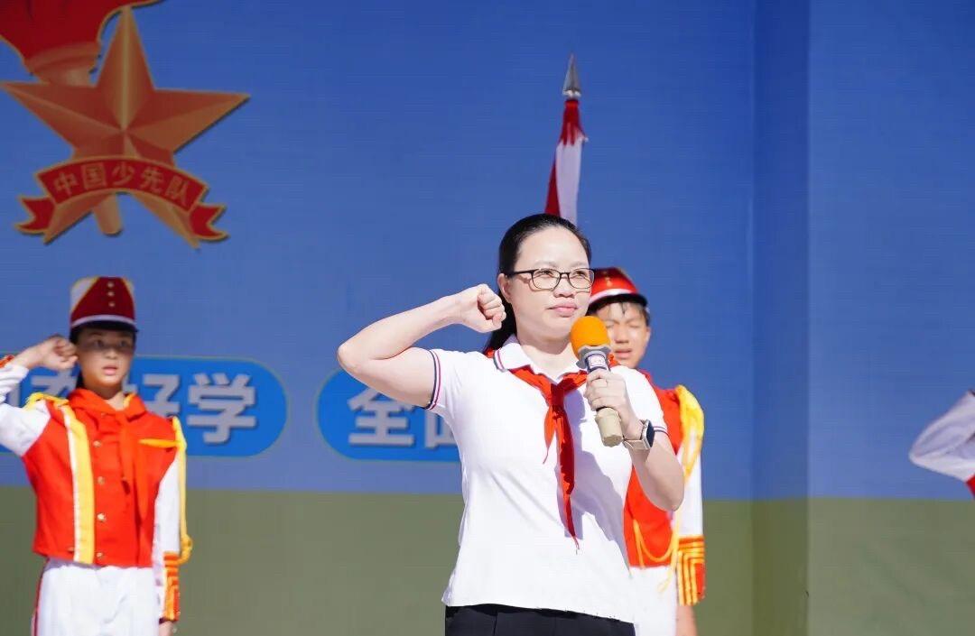 团区委书记袁敏勇同志在仪式上发表了热情洋溢的讲话,他向新入队的队员们表示了热烈的祝贺,并提出了殷切的希望和明确的成长要求。他勉励全体少先队员要珍惜荣誉,从小树立远大理想,勤奋学习知识,锻炼强健体魄,培养优良品德,努力成长为能够担当民族复兴大任的时代新人。